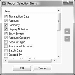 5. Select Account Category. Click OK. This will add Account Category as a Report Selection.