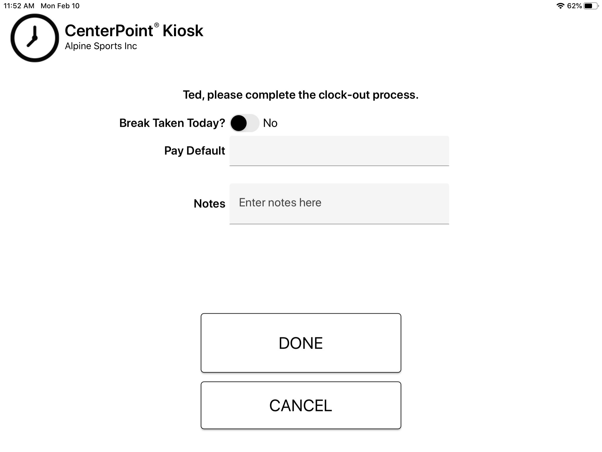 Option 2: CenterPoint Time Clock Kiosk