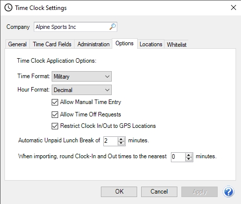 1. Set the When importing, round Clock-In and Out times to the nearest minutes, to a number greater than zero if you want your time entries rounded when they are imported into CenterPoint Payroll Time Sheets.