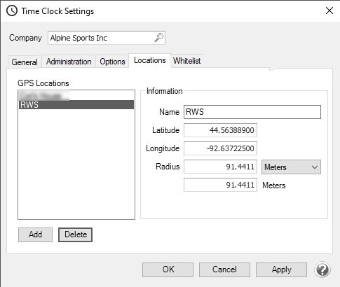 1. If you are restricting clock in/clock out entries within the radius of specific GPS locations, select the Locations tab.