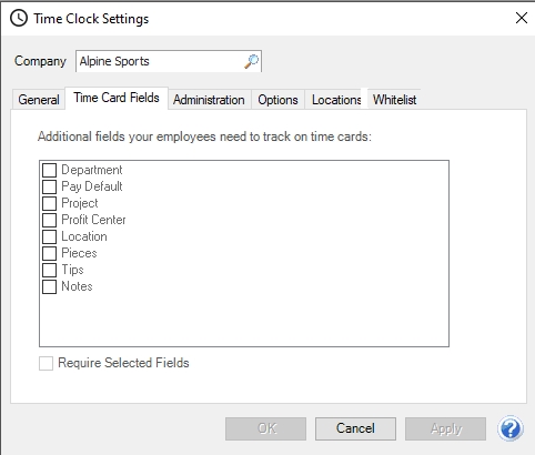 2. Select the Time Card Fields tab.