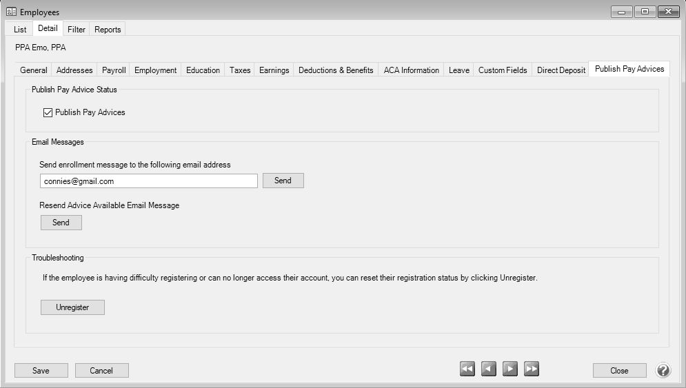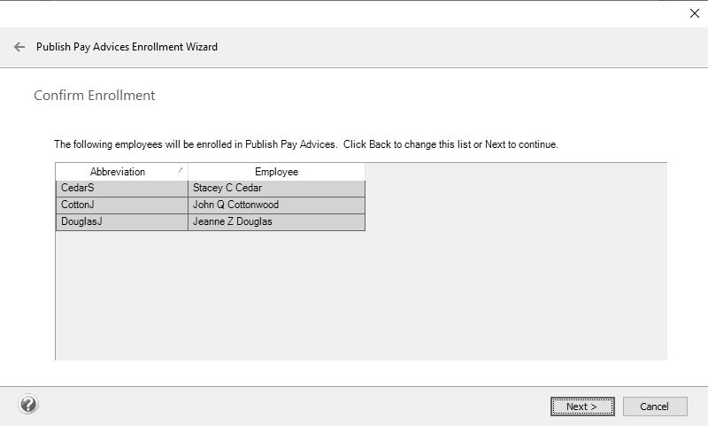 - At the "These employees will be enrolled in Publish Pay Advices and sent an enrollment email message" click Yes to enroll the selected employees.