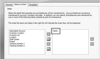 4. Verify that Name is in the box on the right hand side of the Balance Detail tab. If the Associated Account is also on the right hand side of the tab, move it to the left hand side.