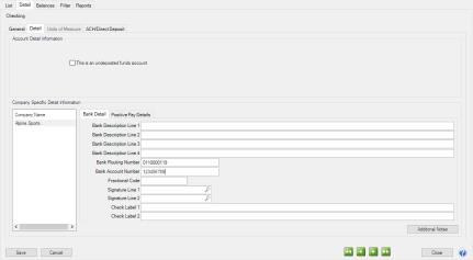 Note: If the Processing Bank Account Number is not entered on the ACH/Direct Deposit tab, the Bank Account Number from the Detail tab in this screen will be used instead.