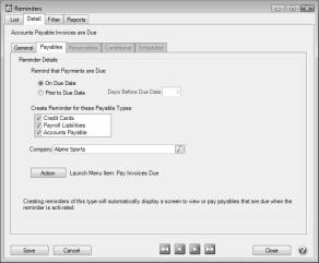 The Payable Reminder will check for Accounts Payable invoices that are due for a specific company/fund either on the payment due date or on a set number of days prior to the due date for specific payable types (credit cards, payroll liabilities, or Accounts Payables).